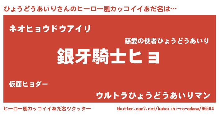 | ポケモン風あだ名 | 『ヒョゴンZ』『ヒヒョウドウアイリ』 |