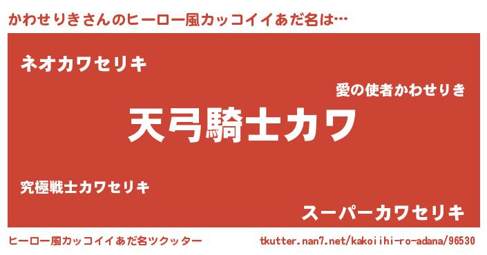 | 男性向けラノベタイトル風あだ名 | 『かわせりきに滅ぼされるだけの簡単なお仕事です』 |