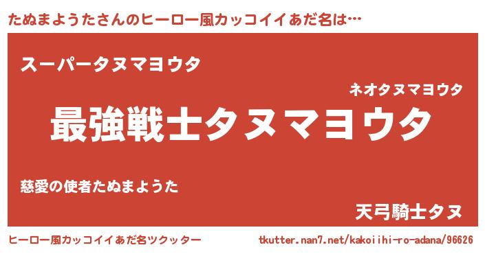 | 男性向けラノベタイトル風あだ名 | 『Re:たぬまようたから始める異世界生活』 |