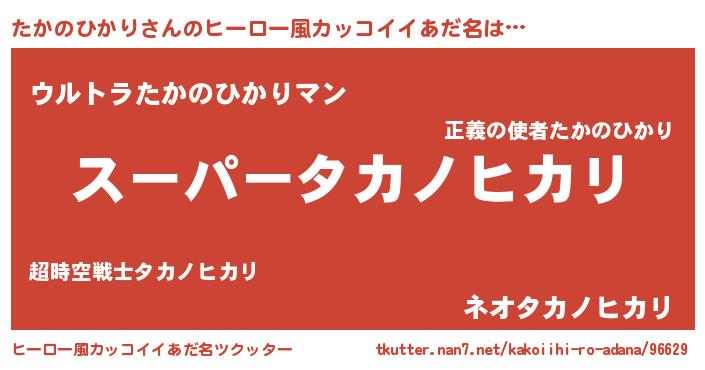 | 男性向けラノベタイトル風あだ名 | 『たかのひかり~年齢イコール彼女いない歴の魔法使い~』 |