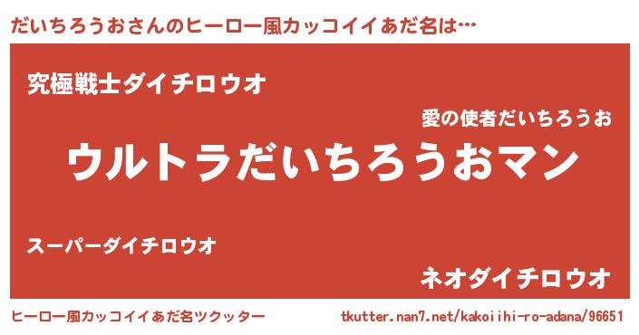 | 男性向けラノベタイトル風あだ名 | 『うちのだいちろうおが世界を掌握している!』 |