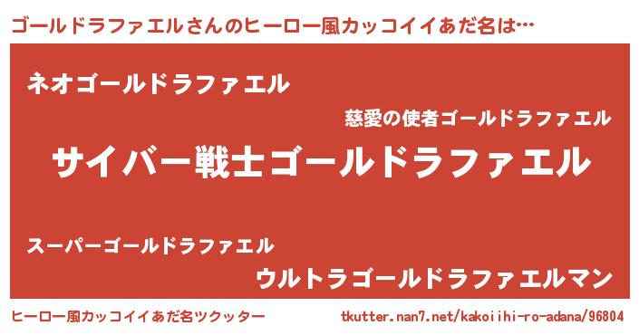 | 女子向けラノベタイトル風あだ名 | 『闇のゴールドラファエル』 |