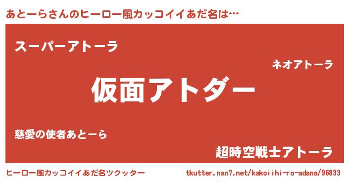 | 男性向けラノベタイトル風あだ名 | 『魔弾の王とあとーら』『あとーらの憂鬱』 |