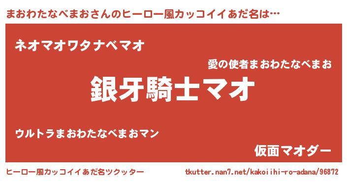 | 女子向けラノベタイトル風あだ名 | 『まおわたなべまおの卵を拾いまして』 |