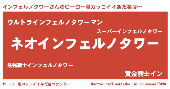 | 意味不明あだ名 | 『永久保存インフェルノタワー』 |