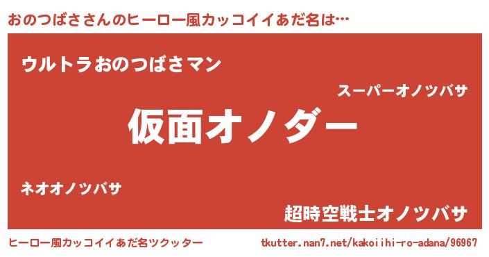 | 男性向けラノベタイトル風あだ名 | 『おのつばさに滅ぼされるだけの簡単なお仕事です』 |