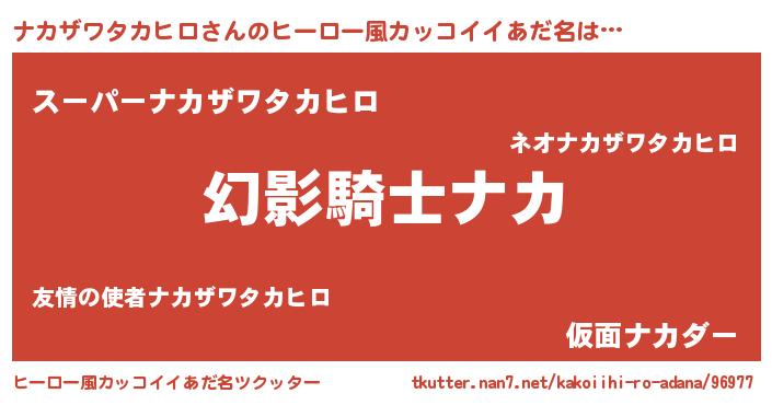 | 男性向けラノベタイトル風あだ名 | 『ナカザワタカヒロの嫁は女の子じゃないと思った?』 |