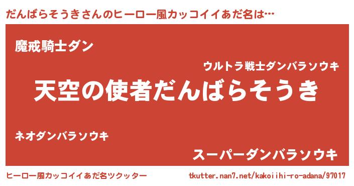 | 女子向けラノベタイトル風あだ名 | 『だんばらそうきの玉の輿計画!』 |