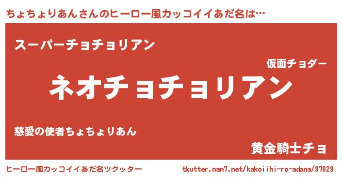 | ヘコむあだ名 | 『ちょちょりあん(震え声)』『ちょふぇ~』 |