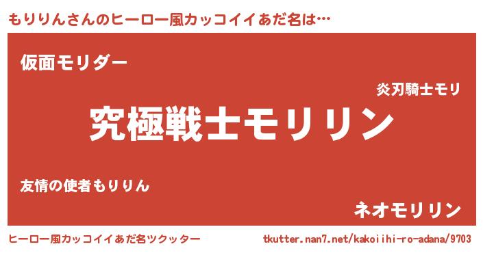 | 男性向けラノベタイトル風あだ名 | 『Re:もりりんから始める異世界生活』 |