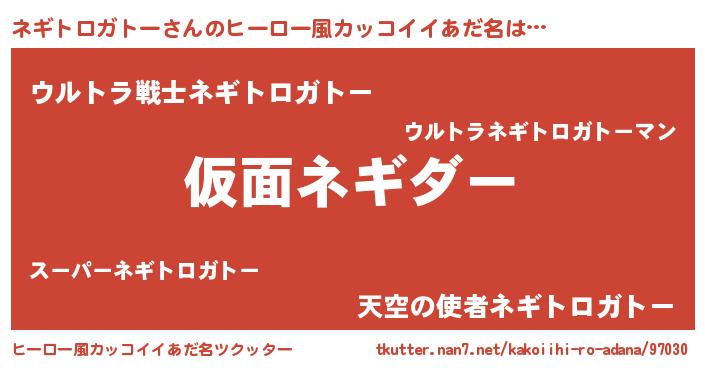 | 意味不明あだ名 | 『住所不定無職ネギトロガトー(9歳)』 |