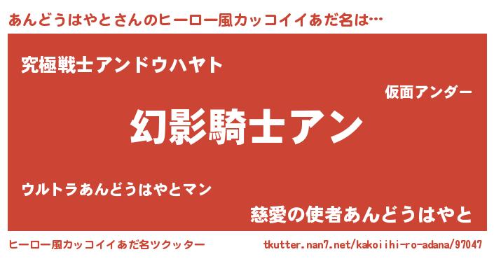 | 意味不明あだ名 | 『とにかく怪しいあんどうはやと』 |