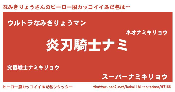 | 意味不明あだ名 | 『とにかく怪しいなみきりょう』 |