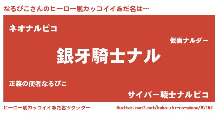 | 男性向けラノベタイトル風あだ名 | 『なるぴこの嫁は女の子じゃないと思った?』 |