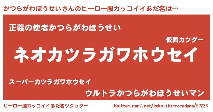 | 胡散臭い通販商品みたいなあだ名 | 『絶対に幸福をもたらす健康食品…その名も「かつらがわほうせい」』 |