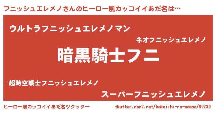 | 男性向けラノベタイトル風あだ名 | 『ダンジョンにフニッシュエレメノを求めるのは間違っているだろうか』 |