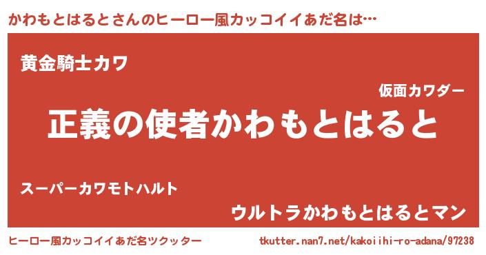 | 胡散臭い通販商品みたいなあだ名 | 『100人中100人が認めたイリジウム磁石…その名も「かわもとはると」』 |