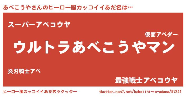 | 女子向けラノベタイトル風あだ名 | 『あべこうやの玉の輿計画!』 |