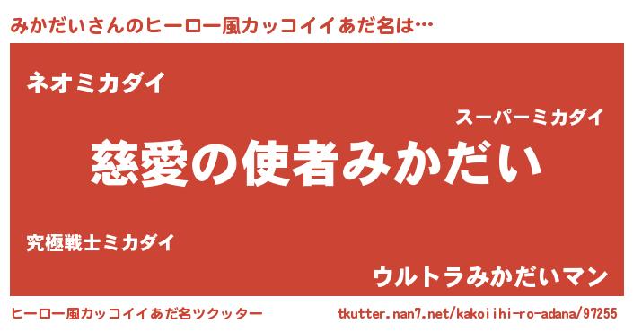 | 男性向けラノベタイトル風あだ名 | 『みかだいに滅ぼされるだけの簡単なお仕事です』 |