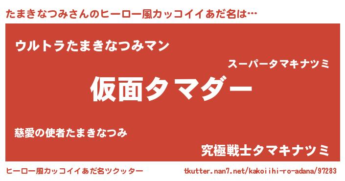 | 男性向けラノベタイトル風あだ名 | 『たまきなつみに滅ぼされるだけの簡単なお仕事です』 |