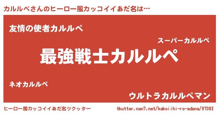 | 男性向けラノベタイトル風あだ名 | 『カルルぺ~年齢イコール彼女いない歴の魔法使い~』 |