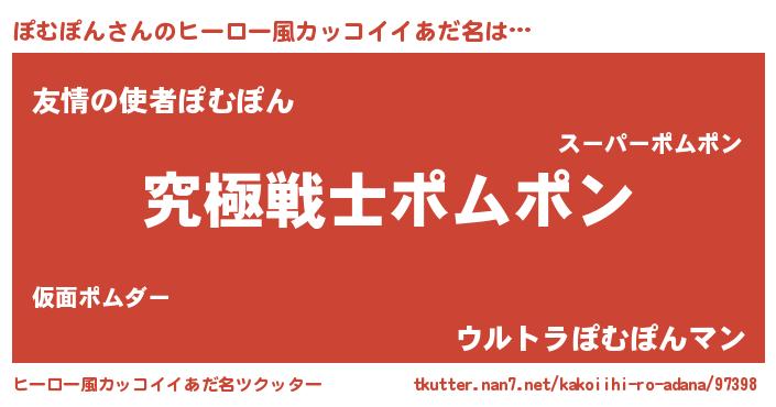 | 男性向けラノベタイトル風あだ名 | 『Re:ぽむぽんから始める異世界生活』 |