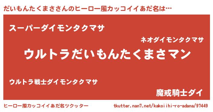 | 意味不明あだ名 | 『だいもんたくまさフォーエバー』 |