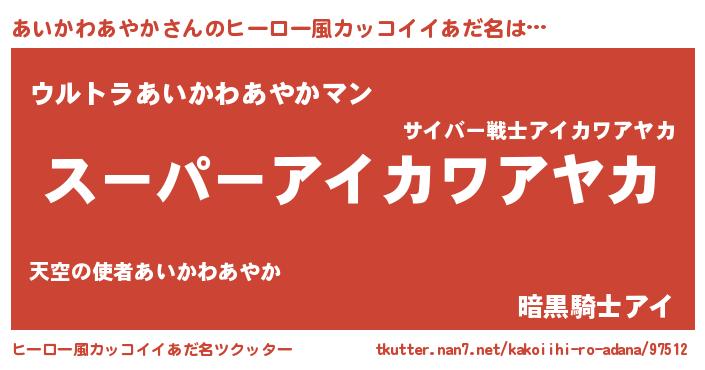 | 胡散臭い通販商品みたいなあだ名 | 『必ず成功する霊験あらたかなお札…その名も「あいかわあやか」』 |