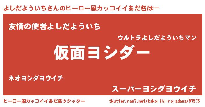 | 男性向けラノベタイトル風あだ名 | 『よしだよういち~年齢イコール彼女いない歴の魔法使い~』 |