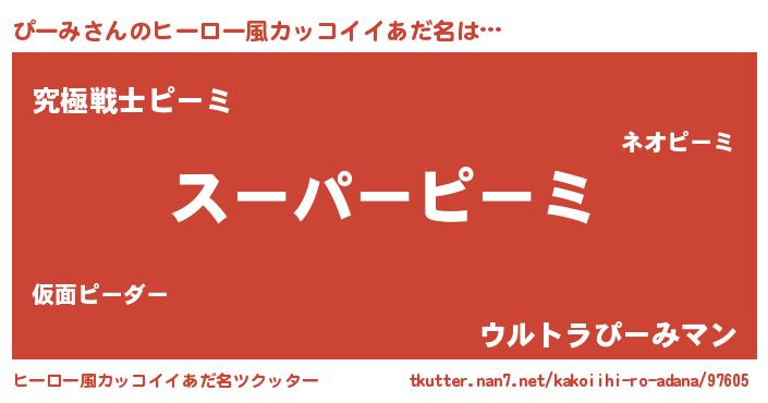 | 男性向けラノベタイトル風あだ名 | 『緋弾のピーミ』『はたらくぴーみさま!』 |