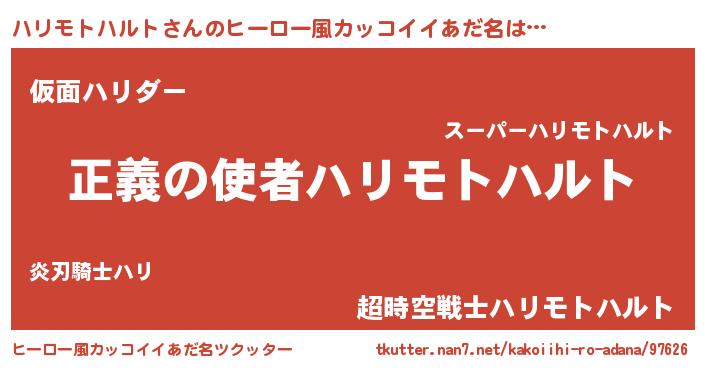 | 胡散臭い通販商品みたいなあだ名 | 『100人中100人が認めたイリジウム磁石…その名も「ハリモトハルト」』 |