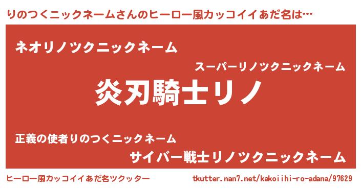 | 男性向けラノベタイトル風あだ名 | 『りのつくニックネーム~年齢イコール彼女いない歴の魔法使い~』 |
