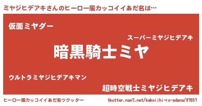 | 男性向けラノベタイトル風あだ名 | 『ダンジョンにミヤジヒデアキを求めるのは間違っているだろうか』 |