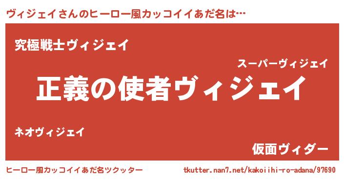| 男性向けラノベタイトル風あだ名 | 『おまえをオタクにしてやるから、俺をヴィジェイにしてくれ! 』 |