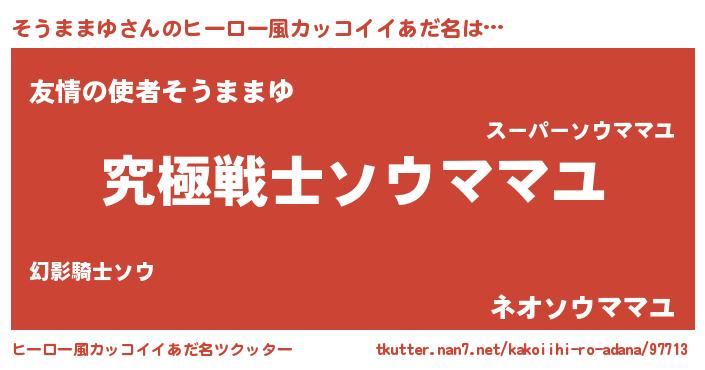 | 男性向けラノベタイトル風あだ名 | 『Re:そうままゆから始める異世界生活』 |