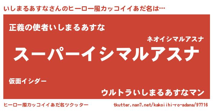 | 胡散臭い通販商品みたいなあだ名 | 『億万長者になれるブレスレット…その名も「いしまるあすな」』 |