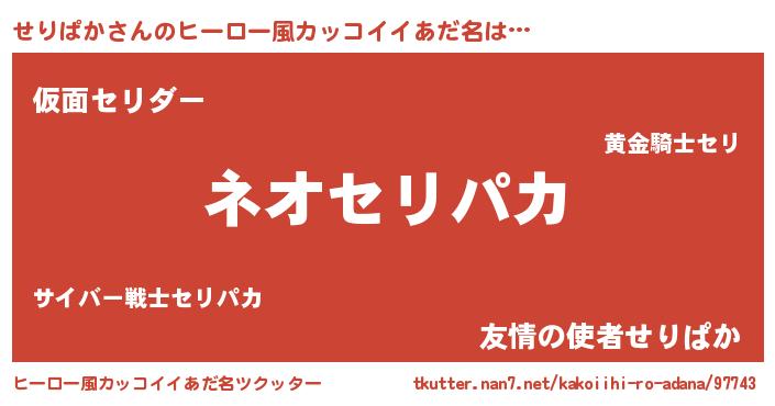 | 男性向けラノベタイトル風あだ名 | 『せりぱかという概念が存在しない退屈な世界 』 |