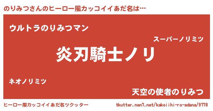 | ポケモン風あだ名 | 『ヒノリミツ』『ノリミダネ』 |