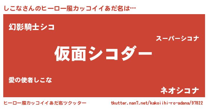 | 男性向けラノベタイトル風あだ名 | 『この素晴らしい世界にしこなを!』 |