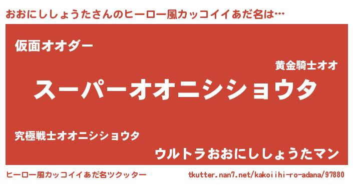 | 男性向けラノベタイトル風あだ名 | 『オオニシショウタアートオンライン』 |
