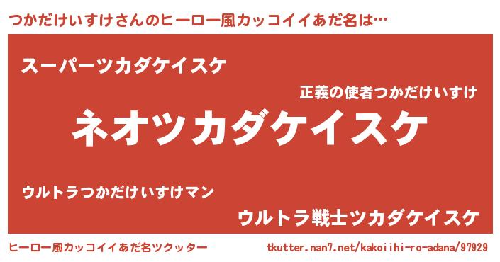 | 男性向けラノベタイトル風あだ名 | 『ツカダケイスケスレイヤー』 |