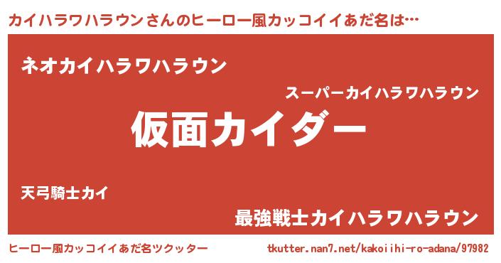 | 伝説のあだ名 | 『古文書に記された暗殺者カイハラワハラウン』 |