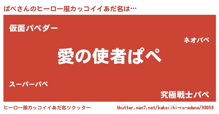 | ヘコむあだ名 | 『ぱぺ(笑)』『ぱぺっふぃ~』 |