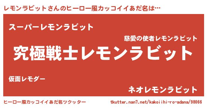 | 男性向けラノベタイトル風あだ名 | 『レモンラビットに滅ぼされるだけの簡単なお仕事です』 |