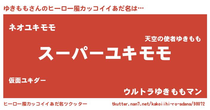 ゆきももさんのヒーロー風カッコイイあだ名をツクッター!