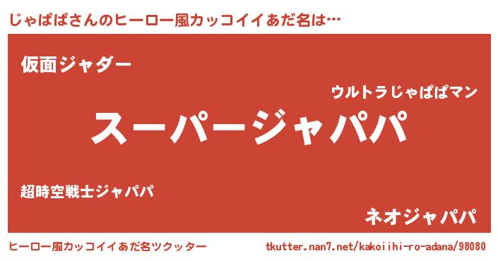 | 胡散臭い通販商品みたいなあだ名 | 『億万長者になれる霊験あらたかなお札…その名も「じゃぱぱ」』 |