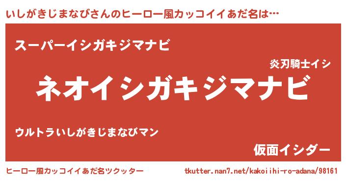 | ヘコむあだ名 | 『いしがきじまなび(笑)』『いしにゅー』 |