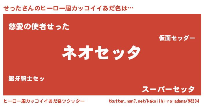 | 女子向けラノベタイトル風あだ名 | 『異世界で失敗しない100のせった』 |