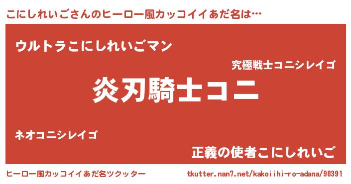 | 意味不明あだ名 | 『とにかく怪しいこにしれいご』 |