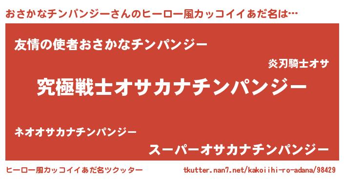 | 料理風あだ名 | 『ヘルシー!おさかなチンパンジーのピリ辛酒蒸し!』 |